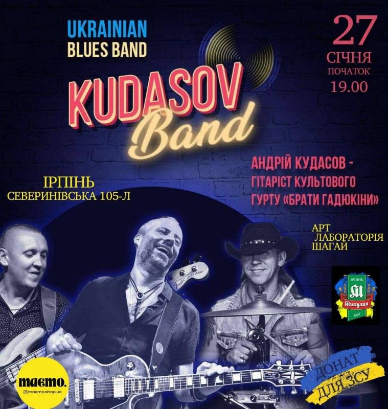 В Ірпені відбудеться благодійний музичний вечір концерт, на якому виступатиме запальний гурт Kudasov Band. Всі зібрані кошти підуть на допомогу Окремому 229-му батальйону ЗСУ.
