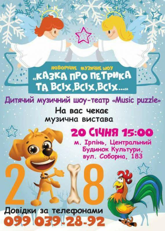 Батьки та їхні діти запрошуються на музичну виставу від дитячого шоу-театру "Music puzzle"