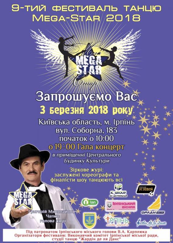 3 березня 2018 року Запрошуємо Вас на 9-тий Фестиваль танцю "Mega-star 2018".