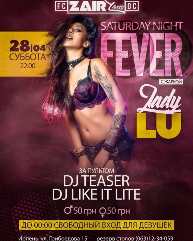 Будьте готові до спекотної суботи в Zair Disco Club разом з Lady Lu. Буде багато алкоголю, диких танців і тотального відриву. Дівчатам до 00:00 безкоштовний вхід.