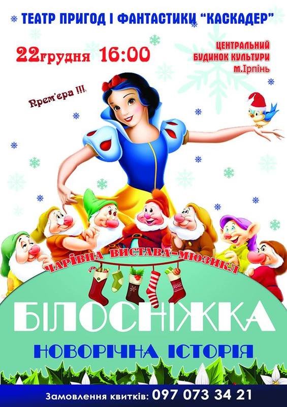 А потім на усіх чекає надзвичайний подарунок - прем’єра нового мюзиклу театру «Білосніжка. Новорічна історія» за мотивами твору братів Грим, герої якого запросять вас до справжньої казкової подорожі, повної пригод та святкових чудес.