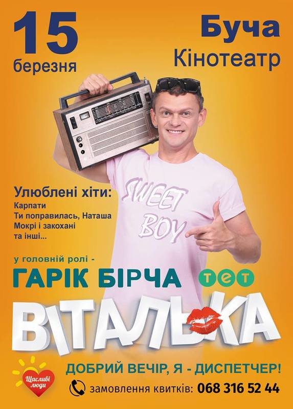 15 березня в Бучу з концертом завітає Віталька (Гарік Бірча). В програмі концерту найкращі хіти виконавця: "Карпати", "Ти поправилась Наташа", "Мокрі і закохані" та інші. Обережно на залізничному переїзді, там здається, панду поїздом збило...