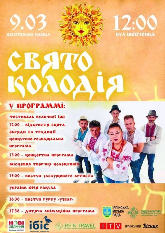 9 березня в Ірпені відбудеться свято Колодія. В програмі свята: фестиваль вуличної їжі, розважальна програма, виступи місцевих творчих колективів, заслуженого артиста україни Юрія Ракула та гурту "Узвар", дитяча анімаційна програма.