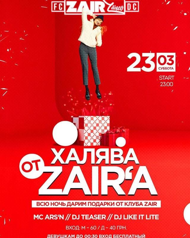 - Де: Zair Disco Club (вул. Грибоєдова 15)
