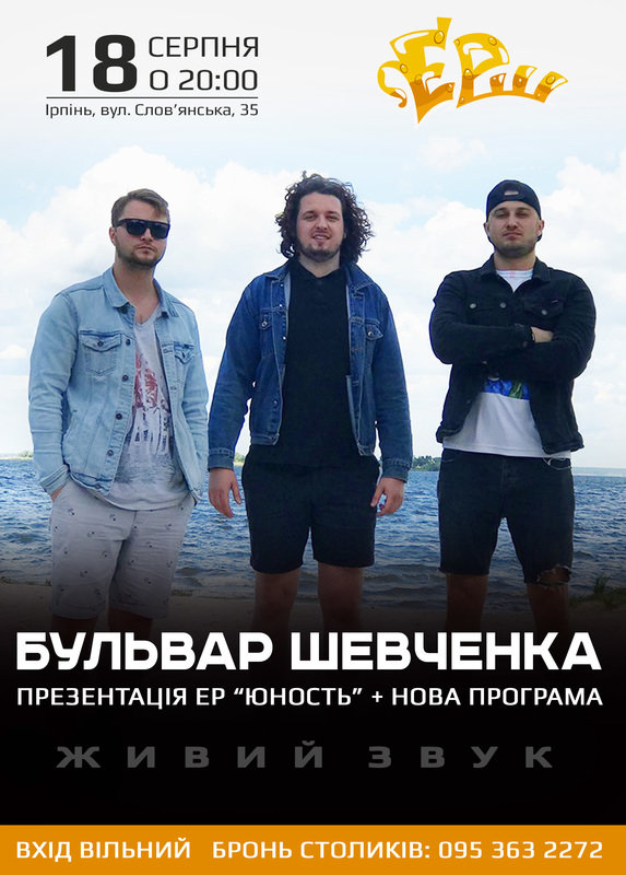 В неділю Ірпінський гурт "Бульвар Шевченка" дасть свій перший сольний концерт в Пабі Йорш. В репертуарі музикантів драйвові рок-хіти чергуються з індастріал лірикою. Бульварівці презентуватимуть глядачам новий EP "Юность" та абсолютно нові, ще не випущені треки. Море драйву та позитиву гарантовано! Приходьте підтримати Ірпінський гурт, вхід вільний.