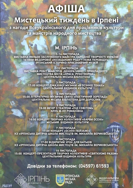 Традиційно в листопаді Ірпені відбувається мистецький тиждень до Всеукраїнського дня працівників культури та майстрів народного мистецтва.