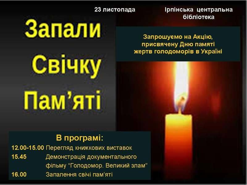 23 листопада запрошуємо на акцію присвячену Дню пам'яті жертв голодоморів в Україні!