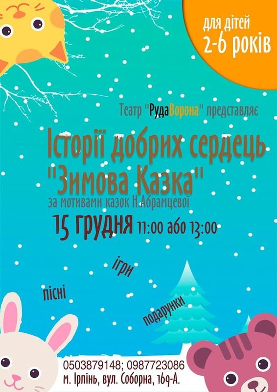Театр "Руда ворона" запрошує діток віком від 2 до 6 років на виставу "Зимова казка".