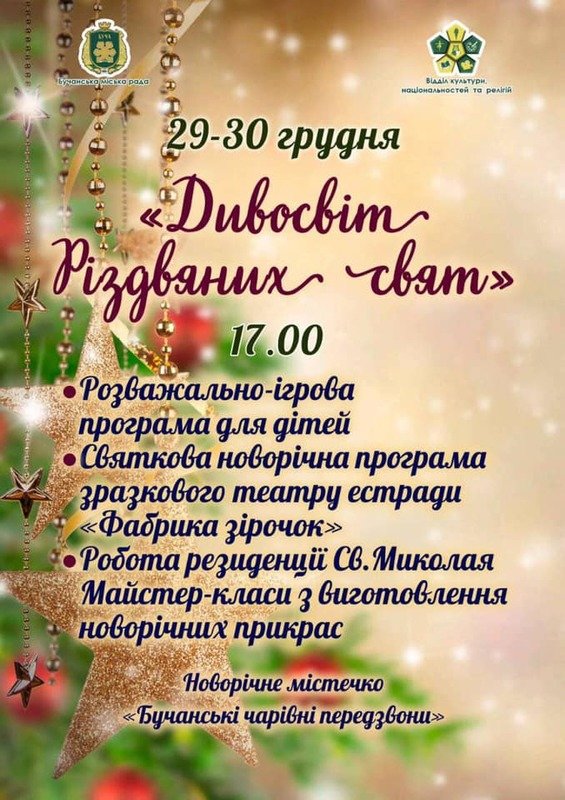 29-30 грудня запрошуються усі бажаючі на розважальну програму у Бучі.