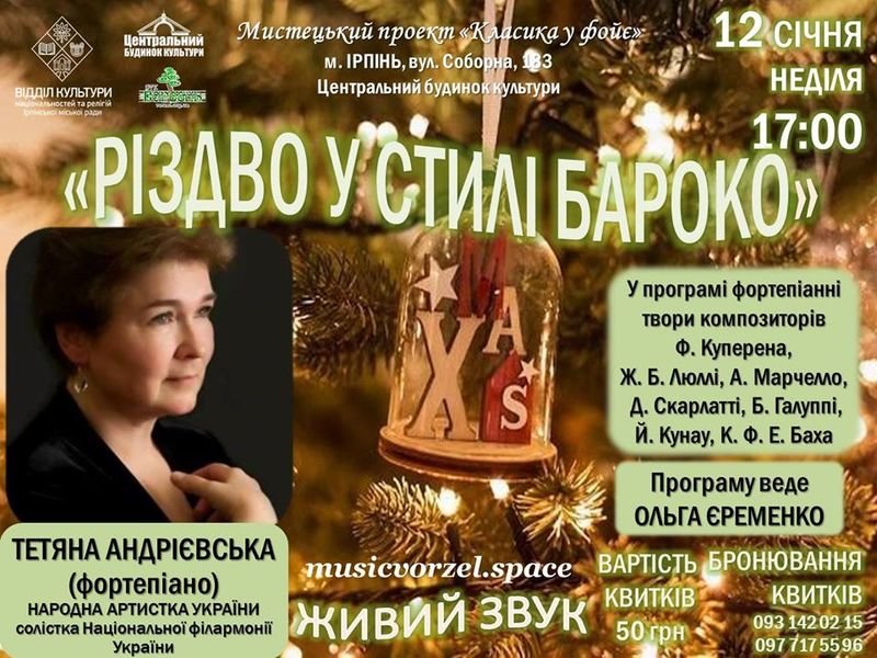 Запрошуємо на музичний вечір "РІЗДВО У СТИЛІ БАРОКО" - 12 січня, неділя, 17.00, фойє Ірпінського центрального будинку культури.