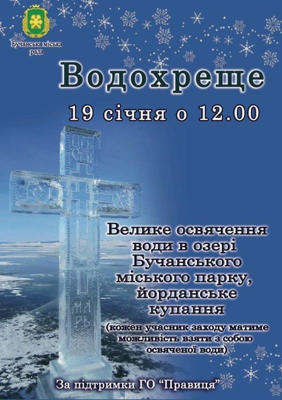 Вже традиційно в Ірпені 19 січня відзначають Хрещення Господнє купанням в ополонці. Цього року бучанці можуть завітати на святкування Водохреща та скупатися в ополонці в озері Бучанського міського парку.