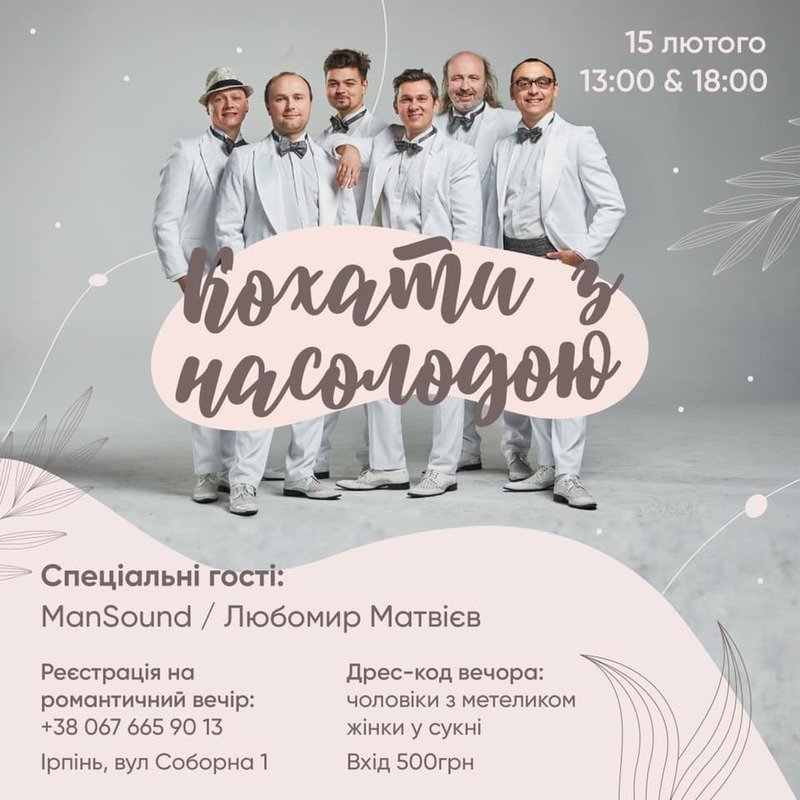 Перша причина чому варто відвідати романтичний вечір "Кохати з Насолодою" це гурт ManSound - український вокальний бренд, який знаменитий своїм фірмовим а-капельним звучанням на весь світ!