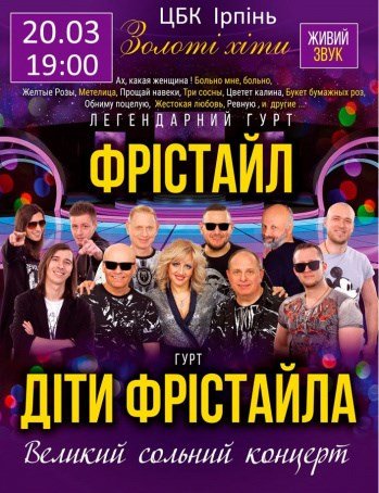 Продюсерський центр Анатолія Розанова спільно з Національним гастрольним концертним сервісом SILUET представляє: Сольний грандіозний концерт групи "Діти Фрістайлу" і легендарної групи "Фрістайл".