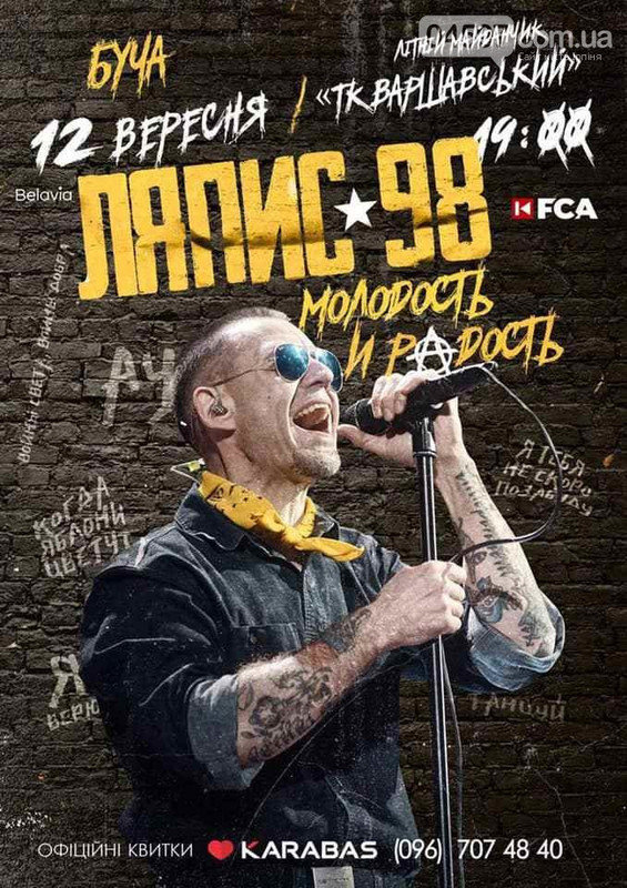 12 вересня на території торгового консплексу «Варшавський» в Бучі пройде концерт білоруського гурту «ЛЯПИС 98» та його незмінного лідер а Сергія Міхалока.