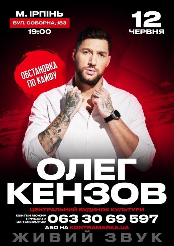 12 червня 2021 року у Центральному будинку культури відбудеться концерт Олега Кензова в Ірпені з концертною програмою “По кайфу”. Коли майбутній співак вперше прийшов на кастинг шоу “Х-фактор”, ніхто не міг подумати, що він не просто володар неймовірного голосу, а суперфіналіст, якого полюбить вся Україна. Сьогодні Олег Кензов самобутній артист і виконавець чималої кількості хітів.