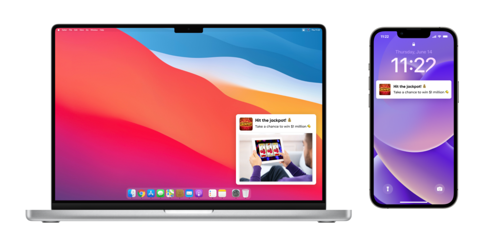 Push-повідомлення: Медійна реклама може ефективно залучати користувачів за допомогою персоналізованого контенту та привабливих бонусів. Такі сповіщення, як "Отримайте 50 безкоштовних обертань зараз!", безпосередньо відповідають інтересам потенційного гравця і створюють відчуття терміновості.
